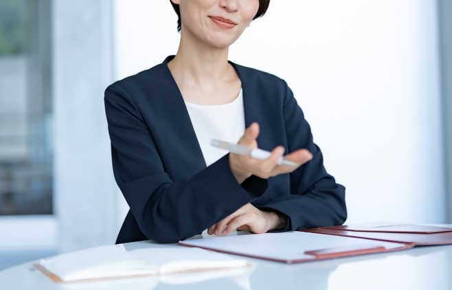 面接中は、背筋を伸ばし、面接官の目を見てハキハキと話します。